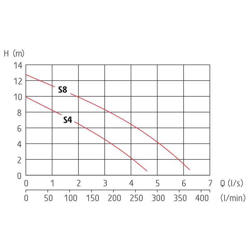 • Impeller (S4 & S8): Cast Iron